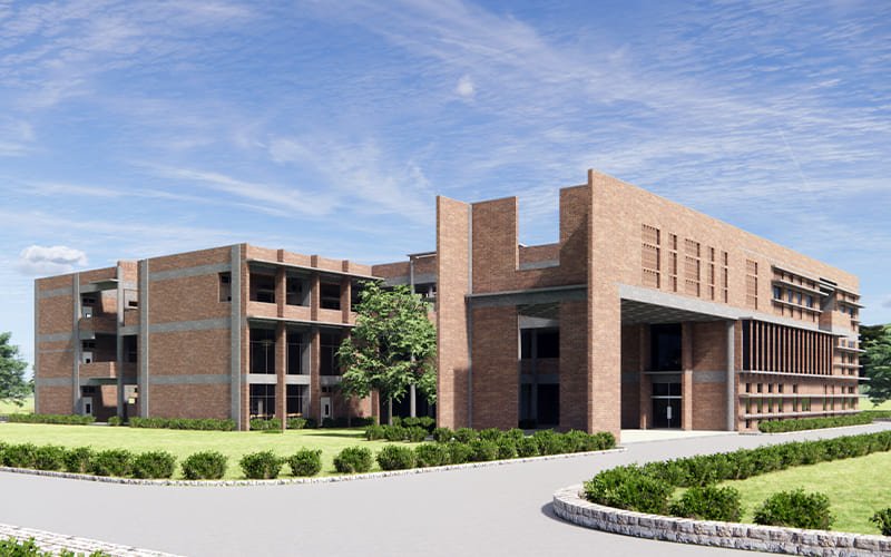 A modern campus nestled amid lush greenery, fostering natural learning and holistic development in an inspiring environment.